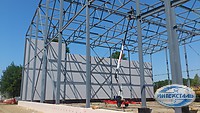 монтаж колонн холодильного склада при помощи автокрана и вышки